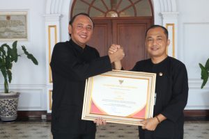 Kemudian penghargaan diserahkan kepada Wali Kota Tegal, H. Dedy Supriyono di Pringgitan Kompleks Balai Kota Tegal, Kamis (9/11/2023).