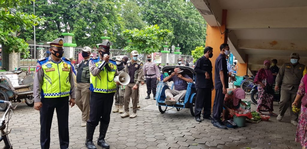 Tops berita.com – Satuan Lalu Lintas mengingatkan pedagang di Pasar Bintoro untuk menerapkan protokol kesehatan guna mencegah penularan Corona Virus Disease 2019 (Covid-19). Kasat Lantas Polres Demak, AKP Dani Permana Putra,SH.SIK.MH. melalui Kanit Dikyasa IPTU M.Shaifuddin,SH mengatakan penerapan protokol kesehatan bagi pedagang maupun Pembeli di pasar tradisional sangat penting, mengingat aktivitas perekonomian di pasar masih berjalan normal. “Selain memberikan edukasi kepada pedagang dan pembeli untuk menerapkan protokol kesehatan, kami juga memberikan himbauan kepada Tukang parkir sepeda motor,” ungkap Kanit Dikyasa (22/1/2021). Untuk selanjutya, IPTU M.Shaifuddin meminta kepada seluruh koordinator pasar beserta jajaran untuk tetap tanpa mengenal lelah dan pantang mundur terus mengoptimalkan upaya penegakan disiplin protokol kesehatan di pasar Bintoro. “Kami mengajak khususnya pedagang dan pembeli di pasar Bintoro untuk selalu memakai masker. Semoga upaya ini mampu memutus mata rantai penyebaran Covid -19. Harapannya kita semua nantinya aman dan terlindung dari Covid -19,” harapnya. ( tgh)