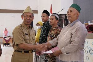 Penyerahan simbolis diberikan Penjabat Bupati Brebes Urip Sihabudin SH MH yang diwakili Kepala Bagian Kesra Setda Brebes Sumarno di Aula Gedung Islamic Center Brebes, Senin (6/11/2023).