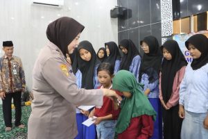Kegiatan Binrohtal dilanjutkan dengan pemberian santunan kepada sejumlah anak yatim piatu dari Panti Asuhan Putri Aisyiyah dan warga sekitar Mapolres. Serta kemudian di tutup dengan doa bersama. (Tgh)