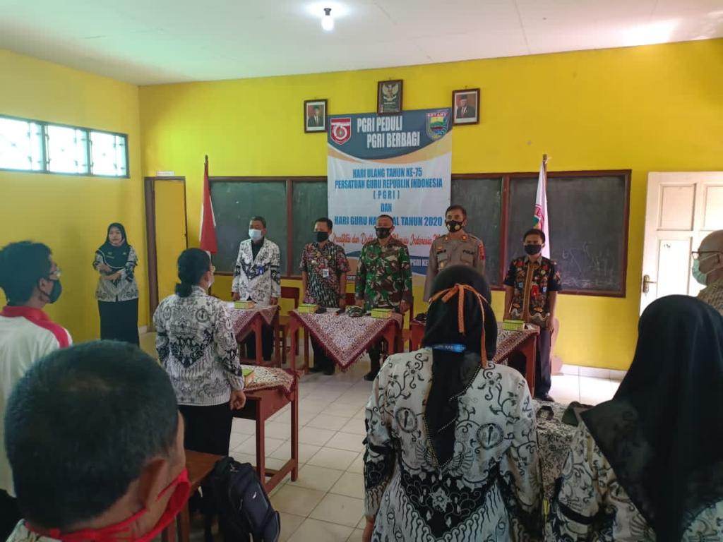 Topsberita.com. Batang-Dalam rangka memperingati Hari Ulang Tahun ke 75 Persatuan Guru Republik Indonesia (HUT PGRI) dan Hari Guru Nasional 2020, PGRI Cabang kecamatan Tulis menggelar Bakti Sosial membagikan sembako terhadap warga terdampak COVID-19 di kantor sekretariat PGRI setempat, Kamis (26/11/2020). Ketua PGRI Cabang Kecamatan Tulis Teguh Mugiyono mengatakan, pembagian sembako dalam rangka memperingati hari ulang tahun ke 75 PGRI dan HGN tahun 2020 ini merupakan kepedulian PGRI terhadap masyarakat terdampak COVID-19. “Sebanyak 270 paket sembako yang di bagikan,” kata Teguh Mugiyono. Ia berharap kegiatan seperti ini dapat berlanjut untuk berbagi dengan masyarakat yang terdampak COVID-19. “Harapan saya semoga seluruh anggota PGRI tetap sehat serta bisa beraktivitas untuk mencerdaskan bangsa,” tuturnya. Camat Tulis Tridjanto mengapresiasi giat PGRI Tulis berbagi pada warga terdampak COVID-19. “Semoga kegiatan PGRI berbagi ini dapat bermanfaat dan menjadi motorik bagi segala lini untuk turut serta membantu masyarakat yang membutuhkan selama pandemi COVID-19,” kata Camat Tulis. Ia mengajak warga untuk bersama-sama dalam menanggulangi penyebaran COVID-19. “Oleh karena itu, mari taati anjuran pemerintah tentang protokol kesehatan,” ajaknya. Sementara itu, Kapolsek Tulis Polres Batang AKP Agus Windarto mengimbau warga selalu menerapkan 3M agar terhindar dari penularan COVID-19. “Diharapkan warga selalu memakai masker, menjaga jarak dan sering mencuci tangan dengsn sabun pada air yang mengalir, sebagai upaya mencegah dan memutus rantai penyebaran COVID-19,” imbaunya. Senada Danramil Tulis Kapten Inf. Supirno meminta semua pihak bersama dalam pencegahan dan penanggulangan penyebaran COVID-19. “Dimasa sekarang ini kita harus serius dalam membantu memutus mata rantai penyebaran COVID-19, karena dengan kepedulian lah yang dapat memutus mata rantai penyebaran COVID-19,” tandasnya. Ia mengajak semua komponen masyarakat bersinergi menggalakkan Jogo Tonggo guna mencegah penyebaran COVID-19 dan menjaga diri kita masing masing. Dia juga berharap pada guru agar bisa mencerdaskan anak anak kita yang selama ini hanya belajar dirumah. ( Tgh )
