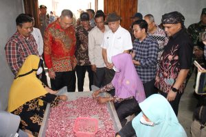 Brebes – Topsberita.com – Menteri Koperasi dan UKM (MenKopUKM) Teten Masduki mengatakan hilirisasi bawang merah dengan menciptakan produk turunan seperti bawang goreng, bawang krispy, tepung bawang merah hingga pasta menjadi salah satu solusi utama untuk mendorong kesejahteraan para petani dan UKM di Brebes.