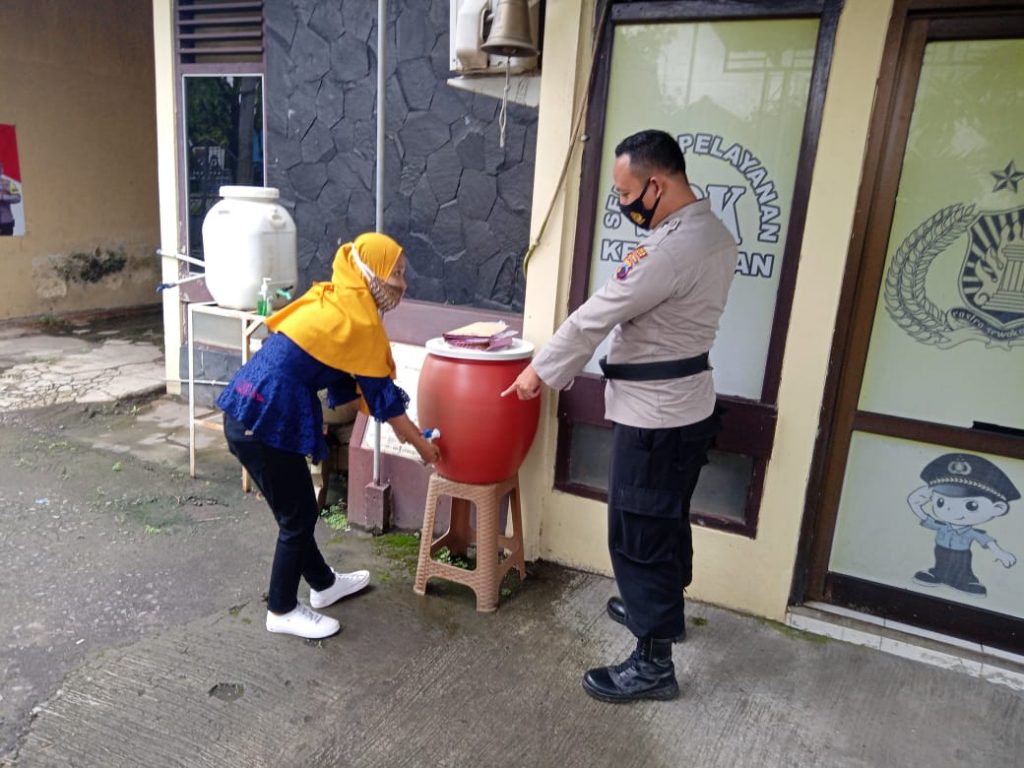 Tops berita.com. Membiasakan hidup sehat dengan mencuci tangan dengan benar dalam pencegahan virus corona di Mako Polsek Mijen Polres Demak disediakan tempat cuci tangan dan anti septick, pada hari ini Minggu (10/01/2021). “Kegiatan membiasakan hidup bersih selain upaya pencegahan epedemik virus corona juga menindak lanjuti arahan pimpinan satuan atas,” ucap piket jaga Polsek Mijen Lokasi pemasangan perangkat hidup bersih terpasang di depan ruang SPKT Polsek Mijen Polres Demak dengan penempatan dilokasi yang mudah terlihat akan mempermudah pengunjung yang datang untuk mengetahui dan melaksanakan cuci tangan sebelum masuk Polsek Mijen. Seperti kegiatan masyarakat ke Polsek Mijen sebelum masuk melakukan cuci tangan yang dilakukan salah satu warga masyarakat. ”Dengan mencuci tangan dengan sabun dan air mengalir diharapkan interaksi dengan kuman, bakteri dan juga virus yang ada ditangan bisa di netralisir,” ucapnya Kegiatan mencuci tangan merupakan kelanjutan program pemerintah dalam melawan virus corona. ”Pemerintah gencar menyusun rencana untuk menghadapi virus pandemi global ini,” kata anggota jaga Polsek Mijen Bripka Sugimin, SH Ahli kesehatan menganjurkan untuk mencuci tangan dengan sabun dan air mengalir selama 15-30 detik. Karena sabun memiliki kandungan senyawa yang dapat mengikat molekul air dan minyak secara bersamaan, termasuk kuman yang berada di tangan. Kemudian, aliran air akan membawa pergi minyak bersama dengan kuman yang terikat. ( tgh)