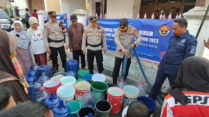“Air bersih yang kami bagiakan sebanyak 20.000 Liter dalam 4 tangki kepada 2 desa yang mengalami kekeringan yaitu desa Pener dan Desa Dermasuci Kecamatan Pangkah yang dilakukan pada hari ini dan kemarin’’ terang Wakapolres