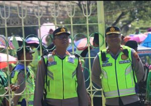 Pengamanan maksimal Polres Tegal dalam rangka Harlah Muslimat NU ke 77 Tingkat Provinsi Jawa Tengah dipusatkan dilapangan Pemda Kabupaten Tegal.