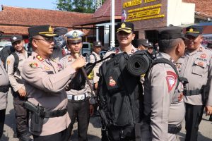 “Pengecekan ini meluputi kelengkapan perorangan seperti rangsel pungung, peralatan pribadi anggota, bekal kesehatan obat-obatan, buku saku, roling bed, senter, HT, tongkat, jas hujan, borgol serta peralatan lainnya.” Tambah Kapolres