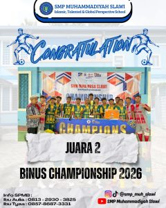 Prestasi Juara 2 Futsal Kabupaten Tegal ini bukan sekadar tentang piala, tetapi tentang proses, kerja keras, dan semangat juang. Dari lapangan hingga podium, siswa SMP Muhammadiyah Slawi telah menunjukkan bahwa dengan tekad dan kebersamaan, prestasi dapat diraih dan nama sekolah dapat terus harum di tingkat kabupaten.( Tgh)
