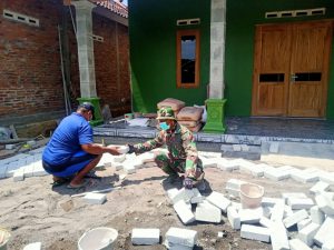Sukoharjo, Tops Brebes – Sasaran fisik TMMD Reguler ke 112 Kodim 0726/Sukoharjo hari ini terus dikebut tak terkecuali di lokasi Rehab Gedung TPA Al-Amin Dk Boto Rt 02/09 Ds. Majasto, hari ini melajutkaa pekerjaan pemasanagan conblock/paving blok di halaman gedung TPA, Kamis (30/09/21).
