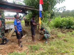 “Sebelum melaksanakan pemasangan Bendera Merah Putih kami bersama warga Kampung Meyerga melaksanakan karya bakti pembersihan lingkungan umum Kampung Meyerga kemudian dilanjutkan dengan pembagian Bendera Merah Putih kepada warga dari rumah ke rumah dan memasang Bendera Merah Putih bersama masyarakat di sepanjang jalan umum Kampung Meyerga”ujarnya.