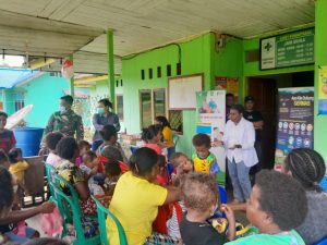 “Dalam pelayanan kesehatan serta imunisasi anggota Satgas bekerjasama dengan aparatur pemerintah kampung (Apkam) dan pihak Puskesmas setempat,” ungkap Kapten Moh.Naim.