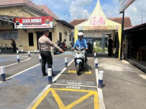 Pelaksanaan ujian praktik terlihat berjalan kondusif, di mana petugas Satpas memberikan pendampingan langsung kepada pemohon SIM C. Petugas memastikan peserta memahami jalur ujian, teknik berkendara yang benar, serta pentingnya keselamatan saat pelaksanaan praktik. Pendekatan yang ramah dan komunikatif tersebut membantu pemohon merasa lebih tenang dan percaya diri.