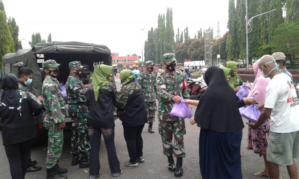 PURBALINGGA, Tops Berita – Serentak di bulan Ramadhan ini jajaran prajurit Kodam IV/Diponegoro bagikan nasi kotak dan masker gratis di seluruh satuan bawah termasuk Kodim 0702/Purbalingga.