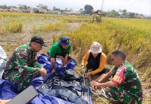 BREBES–Dalam rangka mendukung program pemerintah terkait ketahanan pangan Babinsa Pangebatan Koramil 12/Bantarkawung Kodim 0713/Brebes Sertu Sugeng bersama PPL dan Gapoktan “Mitra Tani” melaksanakan kegiatan ubinan di lahan sawah Desa Pangebatan Kecamatan Bantarkawung, Kabupaten Brebes, Jum’at (7/2/2025).