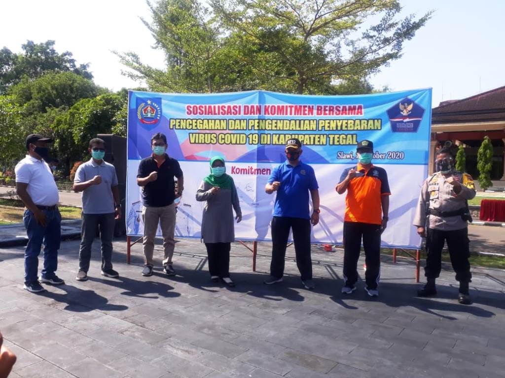Tegal – Pemerintah Kabupaten Tegal melaksanakan sosialisasi pencegahan dan pengendalian penyebaran Covid-19 untuk lembaga di bawah kementrian agama di lapangan halaman kantor Pemkab Tegal, Jumat (2/10/2020). Kegiatan tersebut dihadiri oleh Bupati Tegal, Umi Azizah, Ws. Pasi Kapten Arh Asep Koswara mewakili Dandim 0712/Tegal, Polri, Kadinkes dan jajaran lembaga dibawah naungan kemenag se Kabupaten Tegal. Dalam kegiatan itu tetap memperhatikan protokol kesehatan. Menurut Asep, salah satu tujuan kegiatan ini untuk memberikan pemahaman dan antisipasi dalam kegiatan-kegiatan besar keagamaan kedepannya, hal ini terkait terjadinya peningkatan jumlah warga yang terconfirmasi covid -19 di wilayah Kabupaten Tegal. “Harus selalu melaksanakan protokol kesehatan dan memasifkan 3 M serta mengatur kapasitas kehadiran pada setiap kegiatan yang dilaksanakan” pungkasnya. Selesai sosialisasi yang diberikan oleh Dinkes Kabupaten Tegal, acara dilanjutkan dengan penandatanganan nota kesepahaman. (TGH)