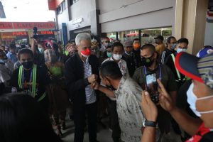 “Halo apa kabar, kamu dari mana asalnya,” tanya Ganjar pada putra-putri Papua yang menyambutnya.