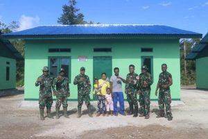 Yapen – Topsberita.com Wujudkan impian masyarakat Kampung Miosnum, Distrik Pulau Yerui, Kab. Kepulauan Yapen untuk memiliki hunian yang layak, Satgas TMMD Ke-112 Kodim 1709/Yawa rampungkan sasaran fisik berupa pembangunan 8 unit rumah permanen Tipe-63 berukuran 9×7 meter, Minggu (10/10/2021).