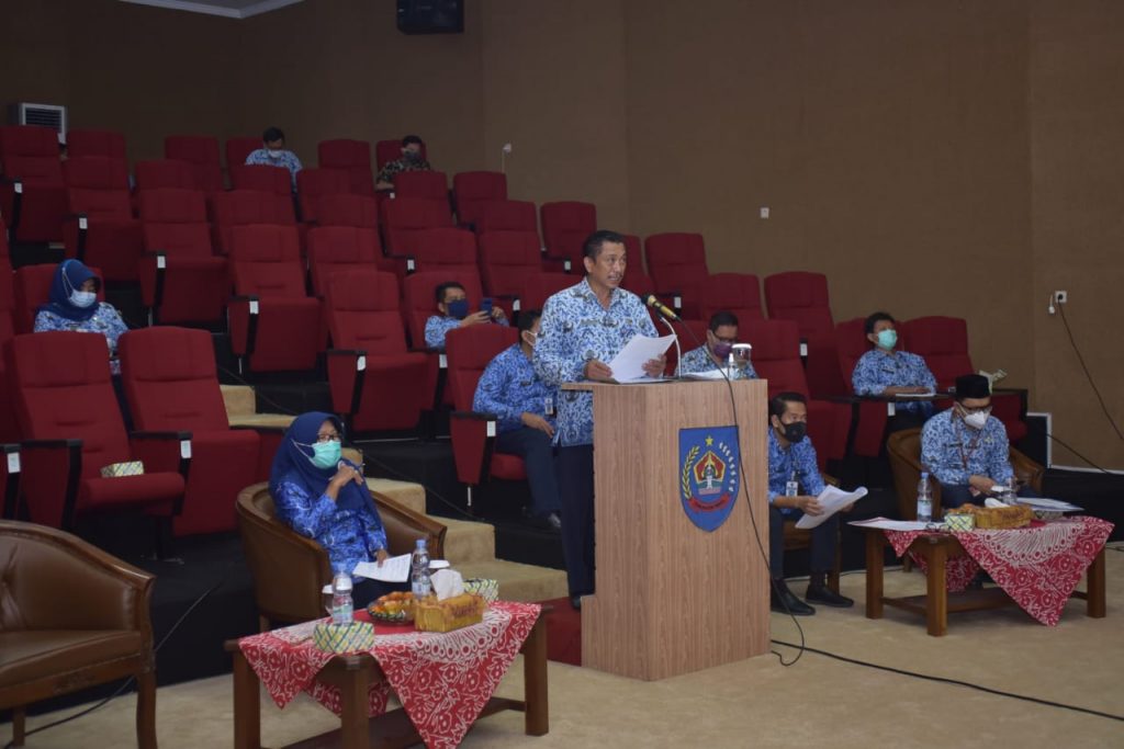 Tops berita.com. Slawi – Capaian kinerja fisik dan keuangan Pemkab Tegal sampai dengan bulan November 2020 belum mencapai 100 persen. Adapun capaian kinerja fisik realisasinya baru 81,82 persen dan capaian keuangan baru terealisasi 67,01 persen. Untuk itu, memasuki akhir tahun 2020 Pemkab Tegal terus berupaya mengejar target realisasi capaian pembangunan. Pernyataan tersebut disampaikan oleh Sekretaris Daerah Kabupaten Tegal Widodo Joko Mulyono pada saat Rakor Pengendalian Operasional Kegiatan (POK) Tahun 2020 di Gedung Dadali pada Kamis (17/12/2020) siang. “Bagi OPD yang realisasinya masih rendah tolong untuk segera dikejar dengan upaya apapun. Masih ada waktu beberapa hari lagi, manfaatkan sebaik mungkin,” kata Joko. Pada kesempatan ini, Joko memaparkan capaian realisasi kinerja outcome dan output. Dirinya mengapresiasi Badan Kesatuan Bangsa, Politik (Kesbangpol), karena capaian realisasi kinerja outcomenya sudah mencapai 100 persen. Disusul Dinas Pekerjaan Umum 99,32 persen, Dinas Sosial 99,13 persen serta Dinas Perdagangan Koperasi dan UKM (DisdagkopUKM) 94,62 persen. Sementara, untuk capaian realisasi kinerja output tertinggi dicapai oleh Badan Kepegawaian Daerah (BKD) 96,45 persen, Dinas Kelautan, Perikanan dan Peternakan (DKPP) 93,93 persen dan Dinas Kependudukan dan Pecatatan Sipil (Disdukcapil) 93,56 persen. Sedangkan untuk capaian realisasi kinerja outcome dan output terendah diduduki oleh Dinas Perhubungan yaitu untuk outcome 40,15 persen dan output 61,68 persen. “Saya juga mengapresiasi sembilan kecamatan yang capaian realisasi kinerja outcomenya sudah 100 persen. Diantaranya, Kecamatan Slawi, Pagerbarang, Margasari, Bojong, Jatinegara, Kedungbanteng, Adiwerna, Dukuhturi dan Talang. Untuk Kecamatan Kramat tolong lebih semangat lagi mengejar targetnya karena capaian kinerja outcomenya masih 28,57 persen,” jelasnya. Di tempat yang sama Bupati Tegal Umi Azizah mengungkapkan meskipun dalam pelaksanaan pembangunan dan penyelenggaraan pemerintah di tahun 2020 ini banyak tantangan dan hal baru, terutama soal kebiasaan normal baru. Akan tetapi, kondisi ini mendorong pemerintah untuk secepatnya bertransformasi, baik secara sistem maupun kelembagaan sebagai respon cepat, adaptasi pada perubahan lingkungan dan keselamatan bangsa. Menjamin terselenggaranya pelayanan publik yang tidak saja mudah, cepat, terbuka dan pasti, tapi juga aman dari penularan Covid-19. “Diperkirakan, kondisi yang kita hadapi tahun ini tidak jauh berbeda dengan 2021 nanti, dimana fokus pemerintah adalah vaksinasi, pemulihan ekonomi nasional, perlindungan sosial dan jaminan kesehatan. Terlebih, Presiden telah menginstruksikan vaksin corona sebagai barang publik yang harus diberikan secara gratis kepada masyarakat Indonesia. Hal ini tentunya akan berpengaruh atau bahkan berdampak pada kebijakan penganggaran belanja daerah tahun 2021,” terang Umi. Sejalan dengan hal tersebut, Umi menitip pesan kepada kepala perangkat daerah untuk dapat mengendalikan seluruh kegiatan di lingkup masing-masing OPD, sehingga seluruh kegiatan bisa dituntaskan, diselesaikan dengan baik dan tepat waktu. Tidak hanya mencapai target outputnya saja, tapi kualitas hasilnya pun juga harus maksimal. Berdampak penting, berdampak luas dan benar-benar bermanfaat. “Bapak, ibu sudah harus mulai menyiapkan rencana kerja prioritasnya di 2021. Siapkan betul strategi program dan pelaksanaan kegiatan yang bernilai strategis, di samping dukungan kita pada pelaksanaan program vaksinasi, penanganan Covid-19, perlindungan sosial dan pemulihan ekonomi,” pesannya. Umi melanjutkan, kegiatan tersebut antara lain pembangunan mal pelayanan publik, pembangunan gedung Dinas Kominfo, penataan ruang dan fasilitas publik di Kota Slawi, penataan kawasan Banjaran Permai, penataan PKL, pembebasan tanah untuk rencana pembangunan Pasar Balamoa, pembangunan TPST, perbaikan jalan di wilayah timur-utara seperti Kramat, Warureja dan Suradadi
