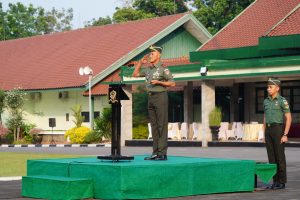 Gubernur Akademi Militer Mayjen TNI Erwin Djatniko, S.Sos sebagai Inspektur Upacara Bendera Tujuh Belasan bulan Juni 2023 yang diikuti oleh seluruh Organik Akademi Militer bertempat di Lapangan Pancasila Akademi Militer Magelang. Senin (19/06/2023).