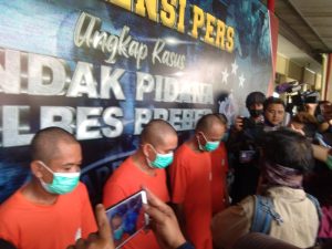 Satreskrim Polres Brebes berhasil mengamankan barang bukti dan lima orang pelaku pencurian puluhan tabung gas melon diantaranya WD, TS, RS, SN, dan MM.