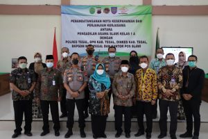 Dalam kesempatan itu Nota Kesepahaman di tanda tangani Ketua Pengadilan Agama Slawi Kelas IA. Drs, H. Abdul Basyir, M.Ag. dan Wakapolres Tegal Kompol Didi Dewatoro, S.I.K.,S.H.,M.A.P.