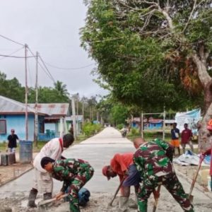 Wujud Kepedulian Satgas Pamtas 407/PK Melakukan Karya Bakti Pengecoran Jalan