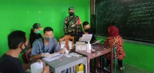 Koramil 03 Mojosongo Kodim 0724 Boyolali melalui Babinsa Manggis Sertu Eko yang hadir di lokasi untuk melaksanakan pengamanan juga memantau jalannya vaksinasi
