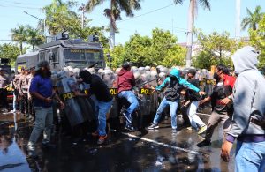 Kota Tegal – Topsberita. com – Merasa tidak puas dengan proses pelaksanaan pemungutan suara di TPS 04 Kelurahan Kejambon, Kota Tegal. Ratusan massa akhirnya menggeruduk kantor Komisi Pemilihan Umum (KPU). Bahkan massa tersebut sampai melakukan tindakan anarkis dan melawan petugas dari Kepolisian.